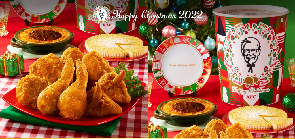 A crucified Santa in Japan. This image has been cited as an example of Japanese confusion over the holiday. In actuality, it’s an art installation by a Japanese artist criticizing what she saw as the rampant commercialization of the holiday. Either way, the end result is quite amusing.Some of this year’s KFC optionsChristmas lights in TokyoA restaurant in Aikawa