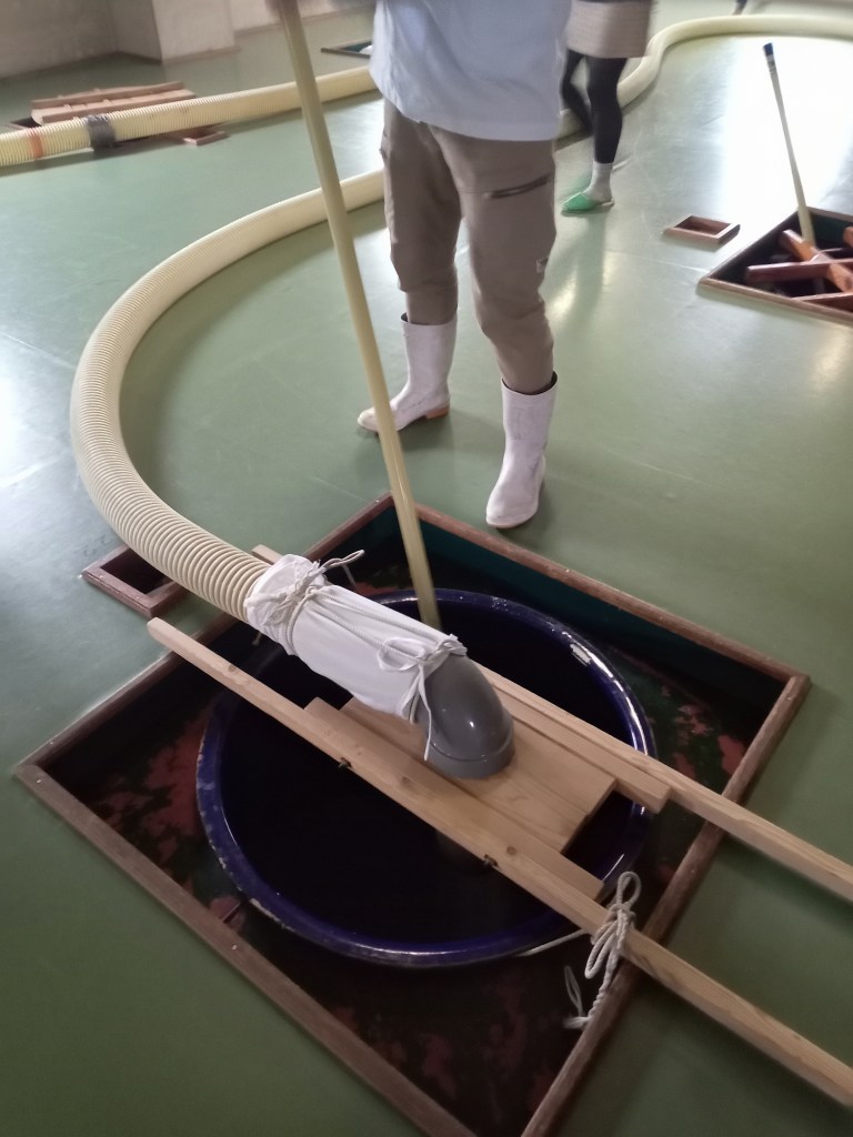 After learning about the ingredients, we were shown the brewing process. Sake production involves a complex series of steps that require precision and skill. First we saw the rice being polished and steamed. From here it is taken to be cooled on sheets. Next it is taken to a special environment where the saccharization mold thrives. We had a chance to try the rice that had the mold growing on it and I would describe the taste and texture as being like cheese rind. Next, we saw the large wooden barrels where the sake is fermented, as well as the tanks where it is filtered and pasteurized. The tanks were built into the floor and quite large. The guide even recalled a macabre tale of one of the workers falling into a tank and dying, so we had to walk around carefully.